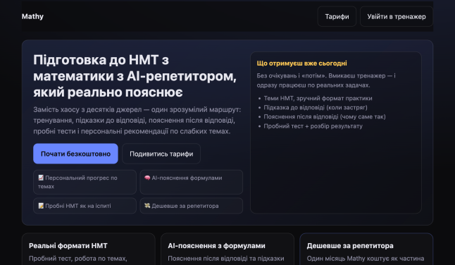 AI-платформа підготовки до НМТ з математики в Україні.